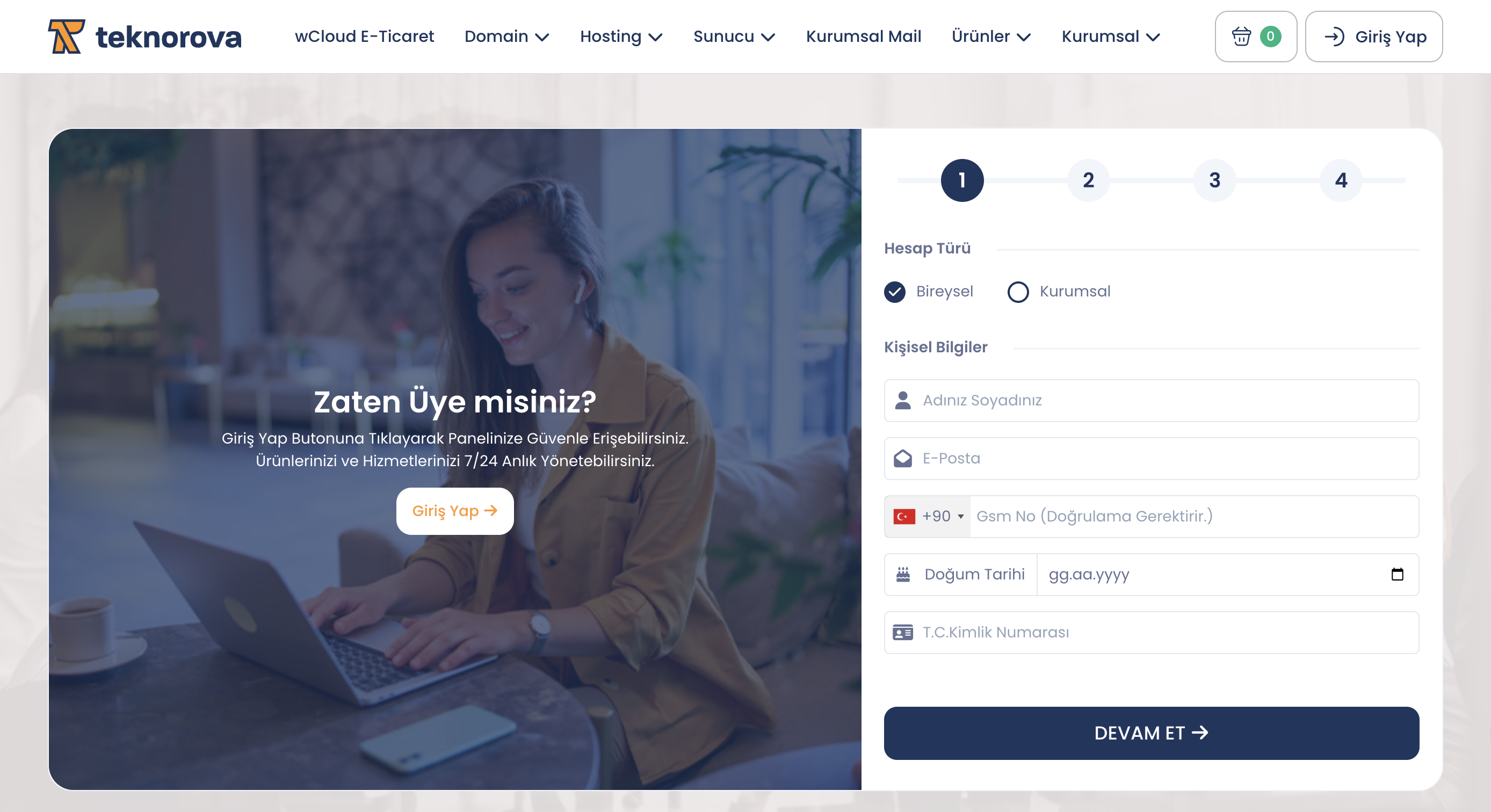 Teknorova.com’a sitesini ziyaret ederek “Hesap Oluştur” sayfasından üyeliğinizi tamamlayın. Üyelik sırasında, güvenlik amacıyla WhatsApp üzerinden telefonunuza bir doğrulama kodu gönderilecektir.